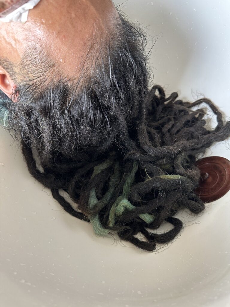 ドレッドにした当初は乳首くらいまでの長さだったけど、それでも洗うのは大変でした。最初は3日に1回ペースだったけどそれが1週間になり、2週間になり、今では2か月に1回しか洗っていません。