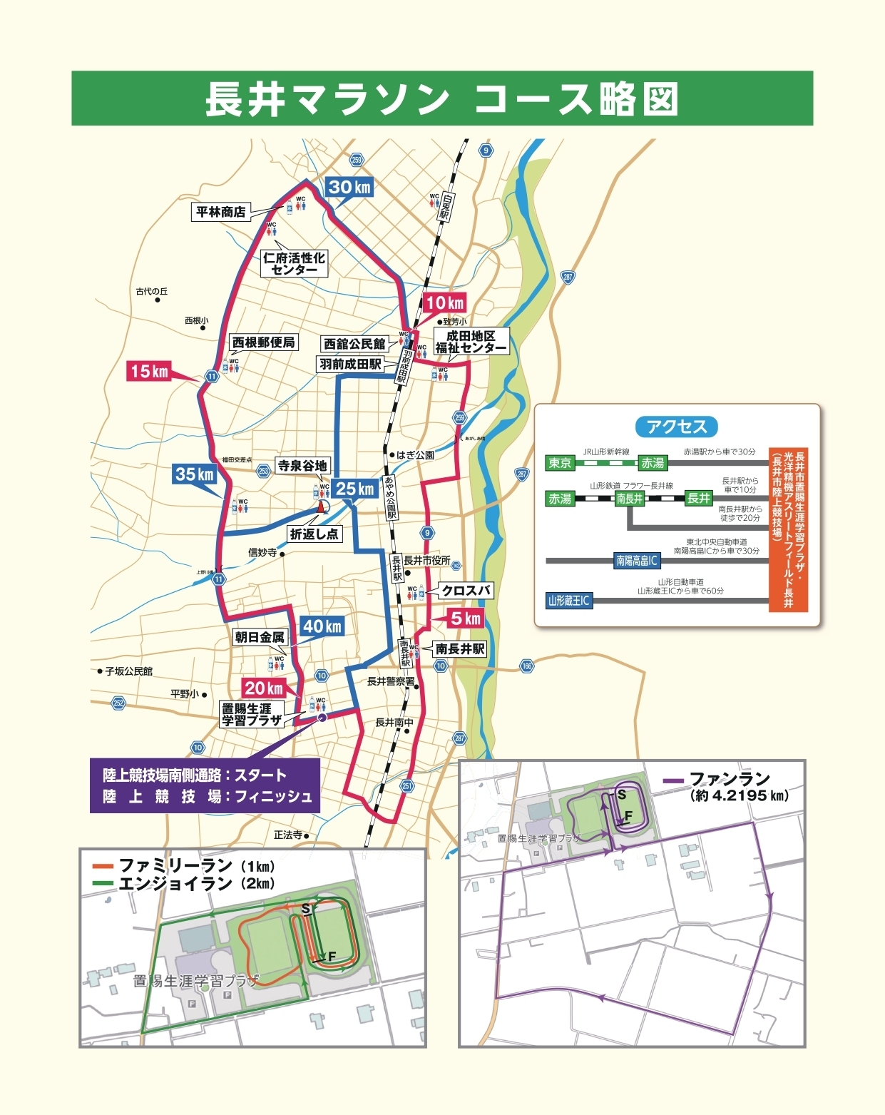 主催は長井マラソン実行委員会、長井市、長井市教育委員会、一般社団法人長井市スポーツ協会。